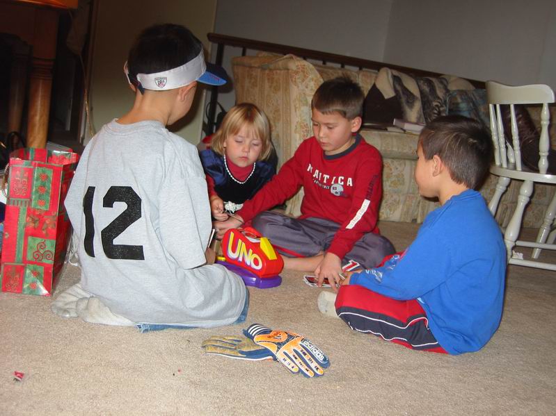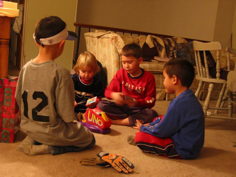 i gang med at spille UNO med drengene. Noah, Susan's ældre søn