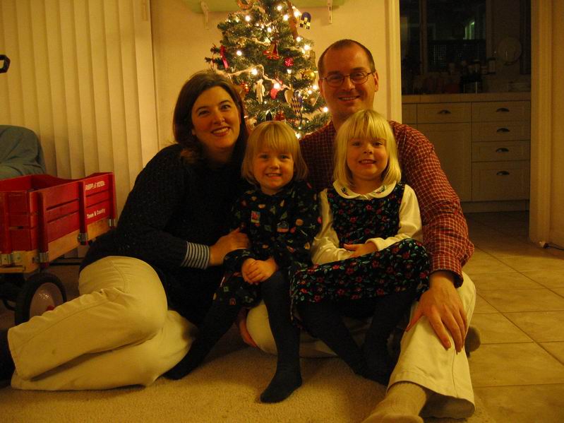 We took some family pictures in front of the tree this year. Monica and Rebecca are quitedifficult to get to smile a decent smile.