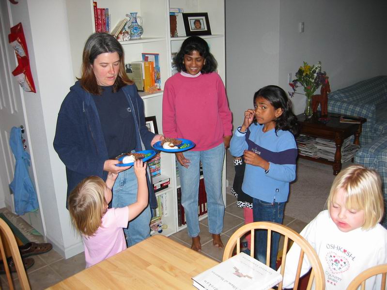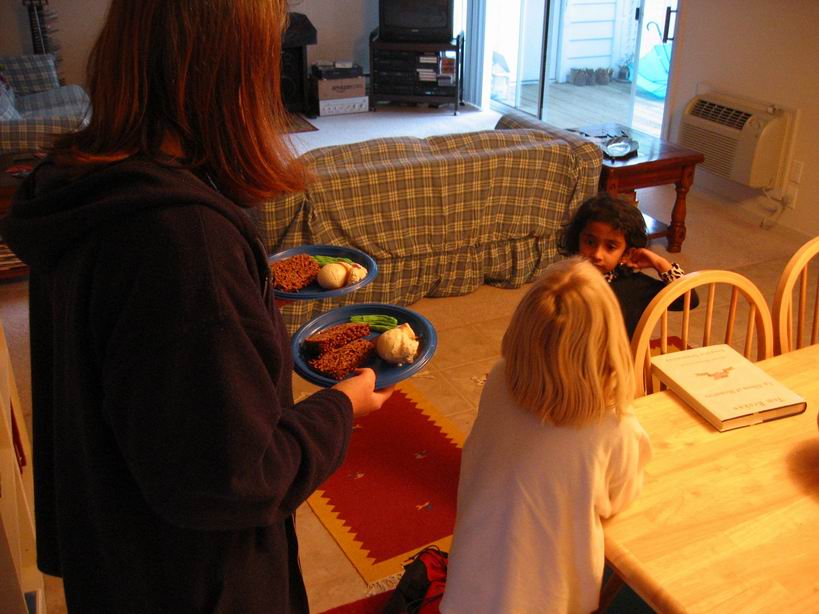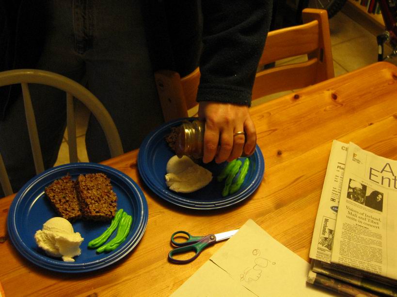 forloren hare, bønner og mosede kartofler med sovs, som i virkeligheden var lavet af Cocoa Krispie Treats, grøn tyggekaramel, og is med karamelsovs. Børnene havde det i hvert fald sjovt med al den slik. | |||||||||||||||