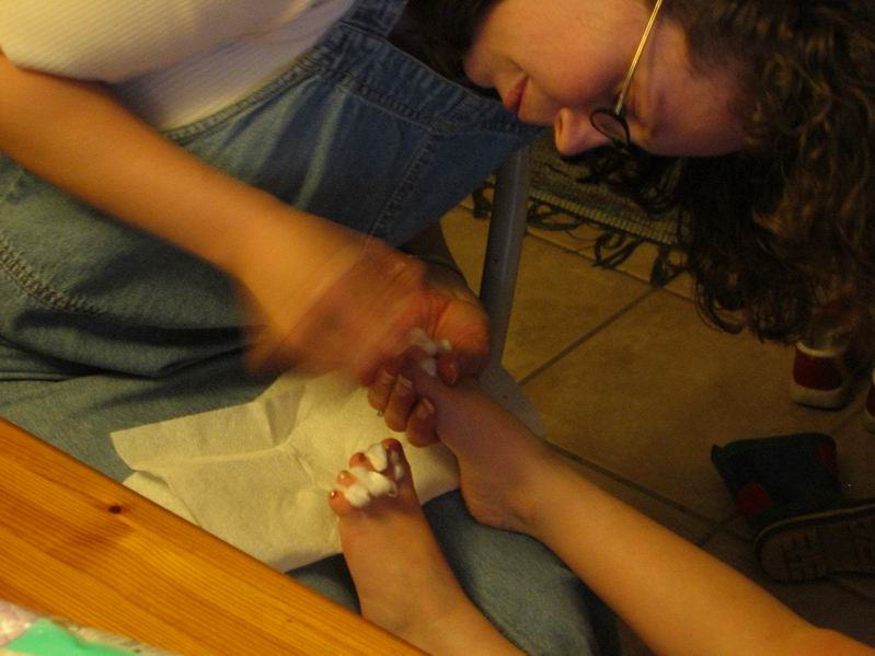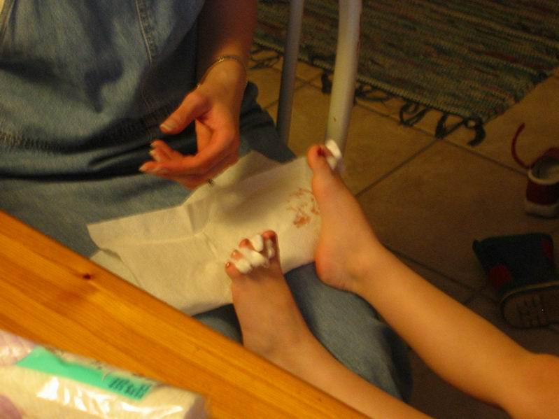 | The girls got their toenails painted