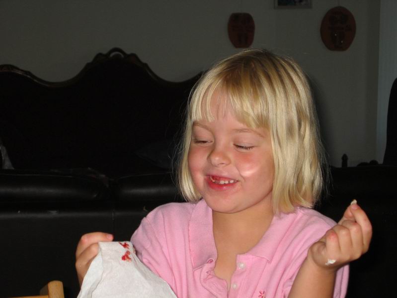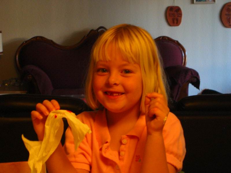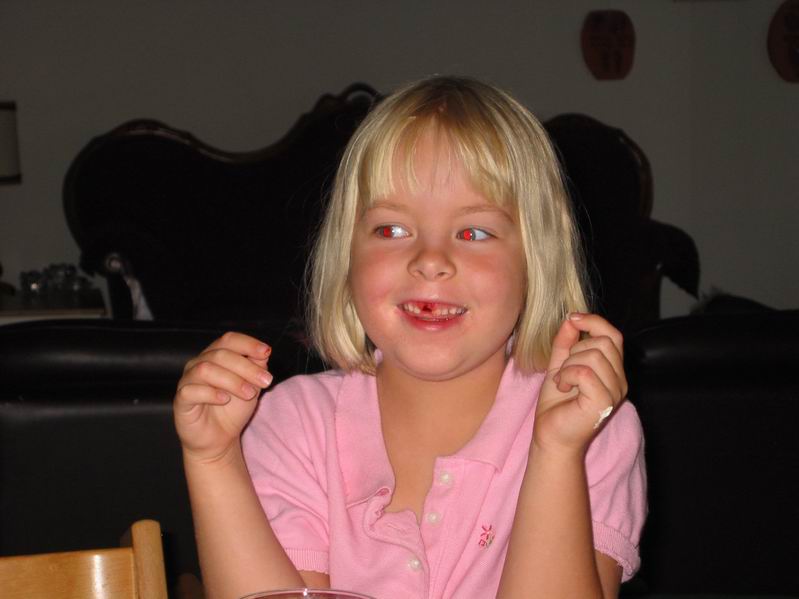Monica har i juli tabt tre tænder i alt. Her er den første kommet ud.